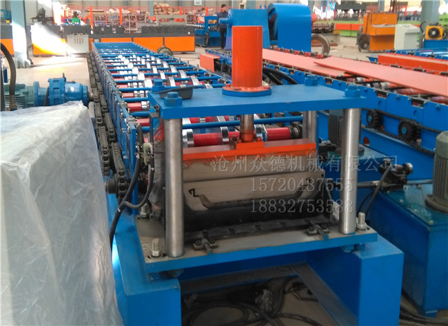描述:全自動(dòng)角馳475型彩鋼壓瓦機(jī),新了傳統(tǒng)屋面成型機(jī)器設(shè)備,該機(jī)器設(shè)備主要由裝料架,裝料架支座,進(jìn)料導(dǎo)入平臺(tái),校平裝置,壓型主機(jī),成型剪切裝置,液壓泵站,全數(shù)控電腦自動(dòng)控制柜等幾部分組成.
