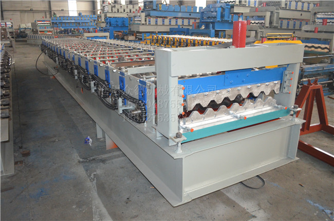 :眾德機(jī)械 名稱:750鋼板壓型設(shè)備 成品用途:用于鋪設(shè)房屋的屋頂或外墻 電機(jī)功率:5.5kw 機(jī)器重量:4T 成型排數(shù):14排 生產(chǎn)速度:8-12米/分鐘 剪切方式:液壓切斷 傳動(dòng)方式:鏈輪+鏈條傳動(dòng) 外形尺寸:7800*1500*1500mm 加工板材厚度:0.2-0.8mm 可加工材質(zhì):彩鋼板、不銹鋼板 PLC控制器:采用(可自選) 我公司配備有拋丸打砂除銹設(shè)備,我廠生產(chǎn)的全部設(shè)備均經(jīng)過拋丸除銹處理,機(jī)器在自然環(huán)境下生產(chǎn)時(shí),不易生銹,從而延長機(jī)械的使用壽命。