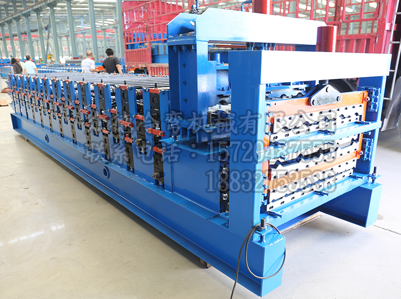 三層彩鋼瓦壓型機(jī)是一機(jī)三型號(hào)彩鋼瓦生產(chǎn)設(shè)備,一臺(tái)機(jī)器可以生產(chǎn)三種型號(hào)的彩鋼瓦建材,該機(jī)器由原料放料架、引料平臺(tái)、壓型主機(jī)、成型后切割等幾部分組成,生產(chǎn)的彩鋼瓦外觀工整美觀、漆紋均勻、、,廣泛應(yīng)用于工業(yè)民用建筑,如廠房、倉庫、體育館、展覽館、影劇院等房面和墻體。 三層彩鋼瓦設(shè)備一機(jī)多用,不僅節(jié)省了占地面積,成本也降低,三層壓瓦機(jī)結(jié)構(gòu)輕巧,,特別適合場(chǎng)地小的客戶選購。 |