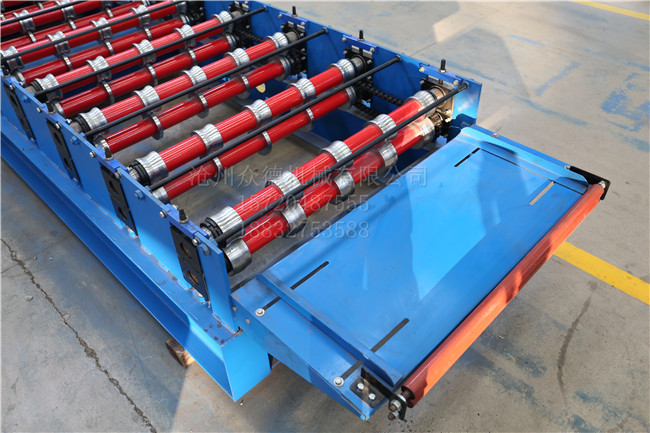 :眾德機(jī)械 名稱:900鋼板壓型設(shè)備 成品用途:用于鋪設(shè)房屋的外墻 電機(jī)功率:3kw 機(jī)器重量:2T 成型排數(shù):11排 生產(chǎn)速度:10-15米/分鐘 剪切方式:液壓切斷 傳動(dòng)方式:鏈輪+鏈條傳動(dòng) 外形尺寸:5800*1500*1500mm 加工板材厚度:0.2-0.8mm 可加工材質(zhì):彩鋼板 PLC控制器:采用(可自選)